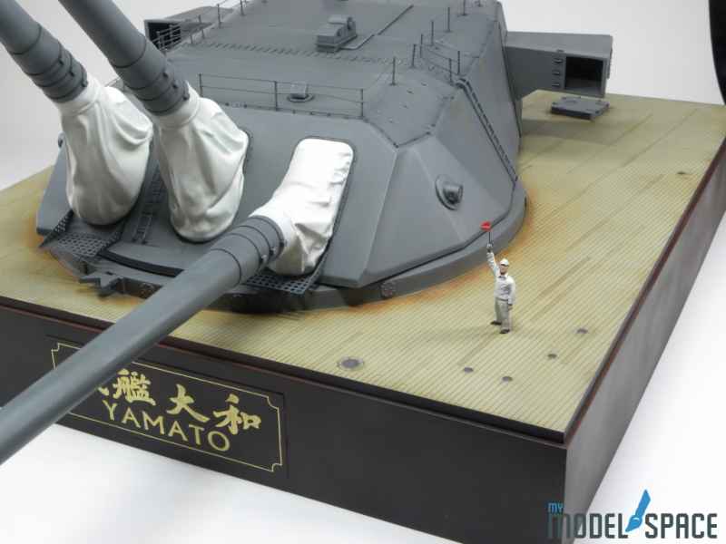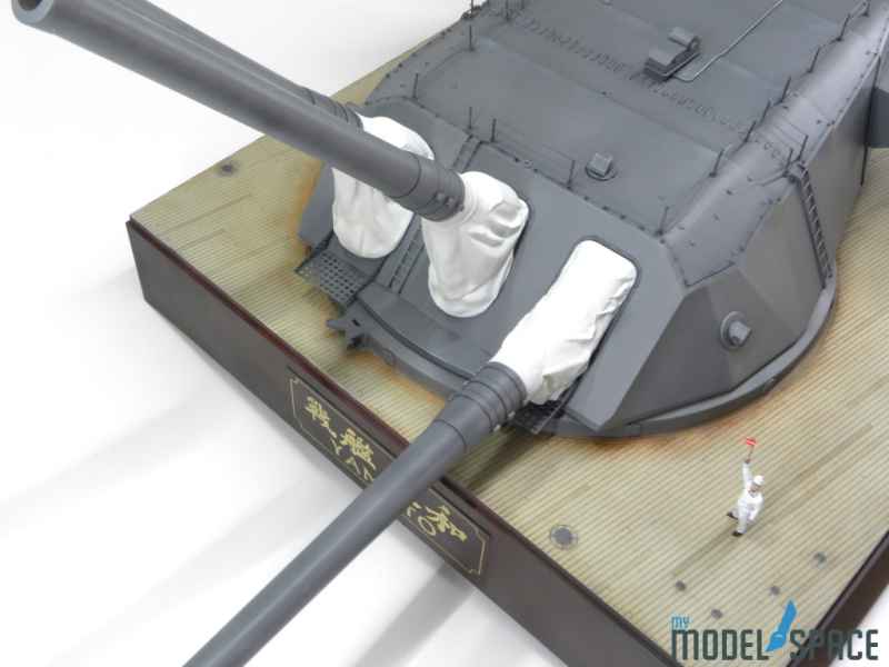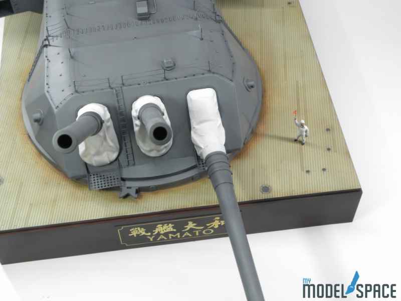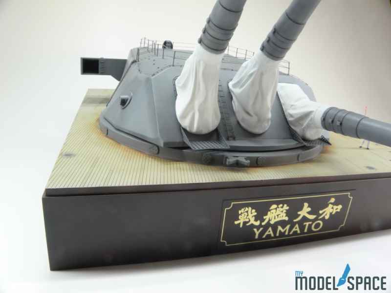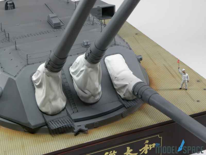Die Yamato war das Flagshiff der Yamato-Klasse. Ursprünglich war geplant 5 Schiffe in dieser Klasse zu bauen. Bis zum Kriegsende wurde nur die Yamato und die Musashi gebaut. Die Hauptbewaffnung der Schlachtschiffe der Yamato-Klasse bestand aus neun 46-cm-Geschützen, die in drei Drillingstürmen untergebracht waren. Alle Türme standen entlang der Längsachse der Schiffe, zwei standen auf dem Vorschiff, wobei Turm „B“ überhöht verbaut war. Jeder Turm wog mit Panzerung und drei Rohren rund 2.510 Tonnen und konnte mit einer Geschwindigkeit von 2° pro Sekunde durch Hydraulikpumpen zu den Seiten hin geschwenkt werden. Die Rohrerhöhung konnte mit einer Geschwindigkeit von 10° je Sekunde verändert werden. Alle drei Türme verfügten jeweils über einen stereoskopischen Entfernungsmesser mit einer Basislänge von 15 Metern und über ein einfaches 10-cm-Beobachtungsteleskop. Die Geschütze hatten im Verhältnis zu ihrer großen Reichweite eine vergleichsweise kurze Rohrlänge, so dass die Streuung der Einschläge bei maximaler Schussweite recht hoch war. Um dennoch die Wahrscheinlichkeit für einen Treffer zu erhöhen, hatten die Schiffe der Yamato-Klasse je neun dieser Geschütze auf drei Drillingstürme verteilt an Bord. Beim Abfeuern von Vierer- und Fünfersalven konnten jeweils die beiden äußeren Rohre eines Drillingsturmes gleichzeitig abgefeuert werden, während die Ladung im mittleren mit einer Verzögerung von 0,08 Sekunden gezündet wurde.