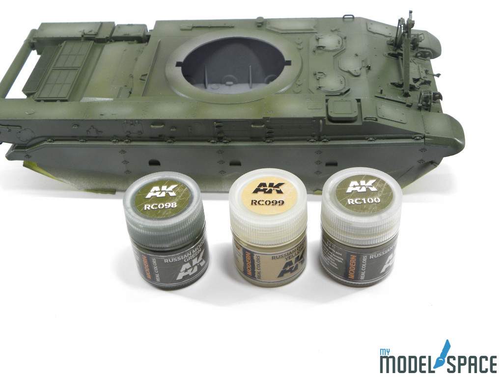 Verwendet habe ich die Real Color Farben von AK Interactive. Diese haben sich über die Zeit zu echten Favoriten entwickelt und stehen für mich mittlerweile auf Augenhöhe mit den bewährten Tamiya-Farben. Sie lassen sich fein zerstäuben, decken gut und bieten eine angenehme Verarbeitung – gerade bei grösseren Flächen ein echter Vorteil.
