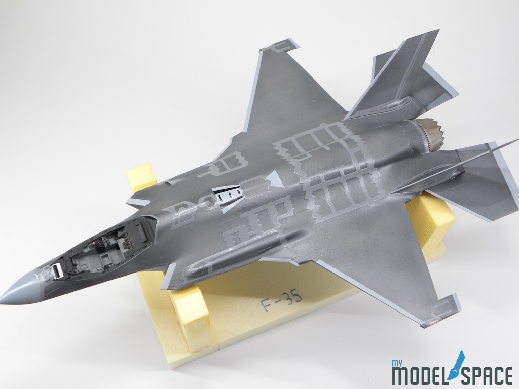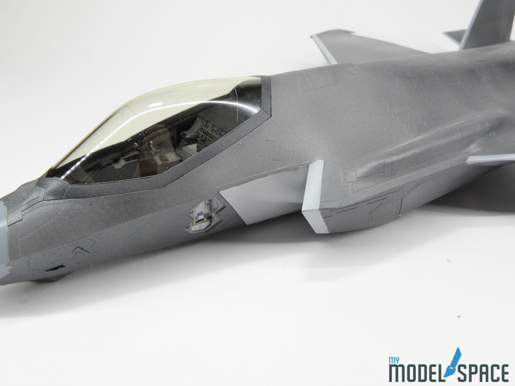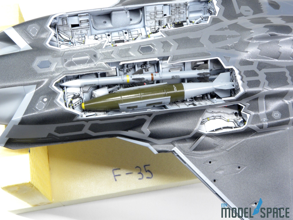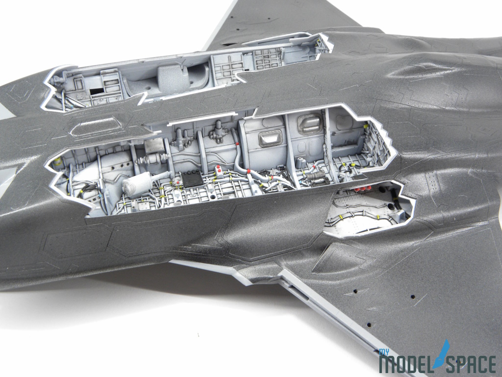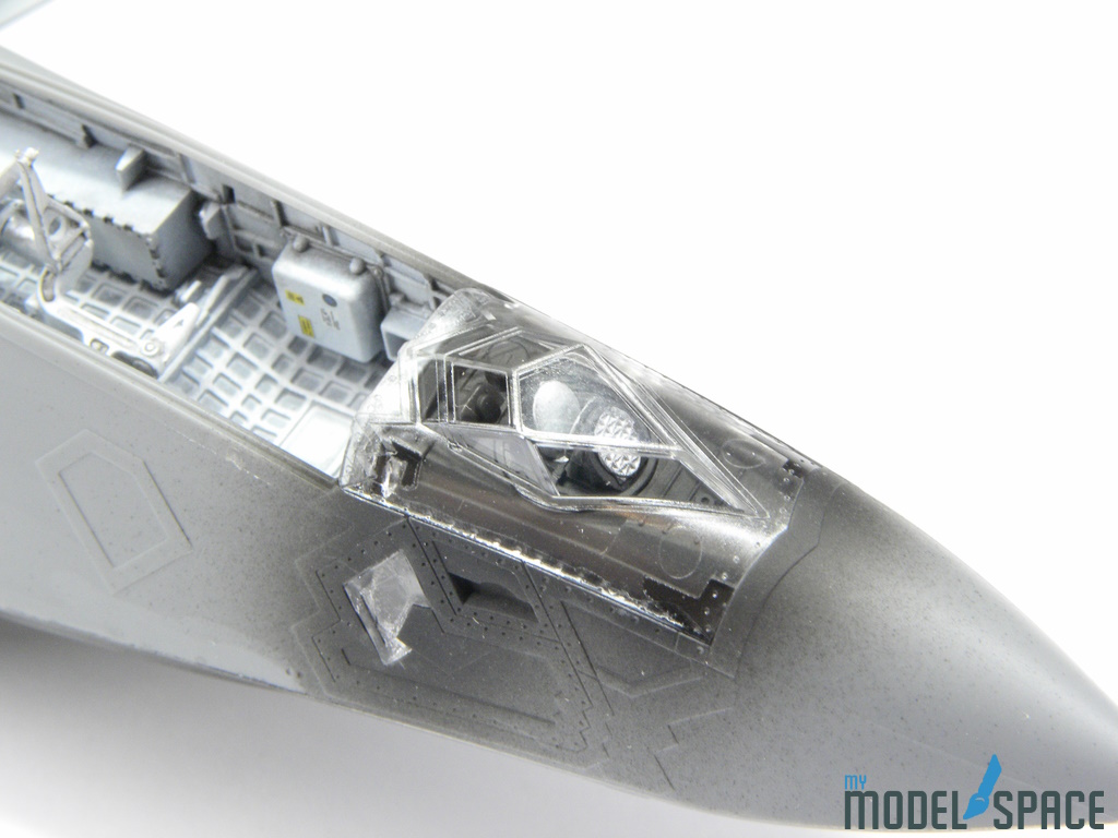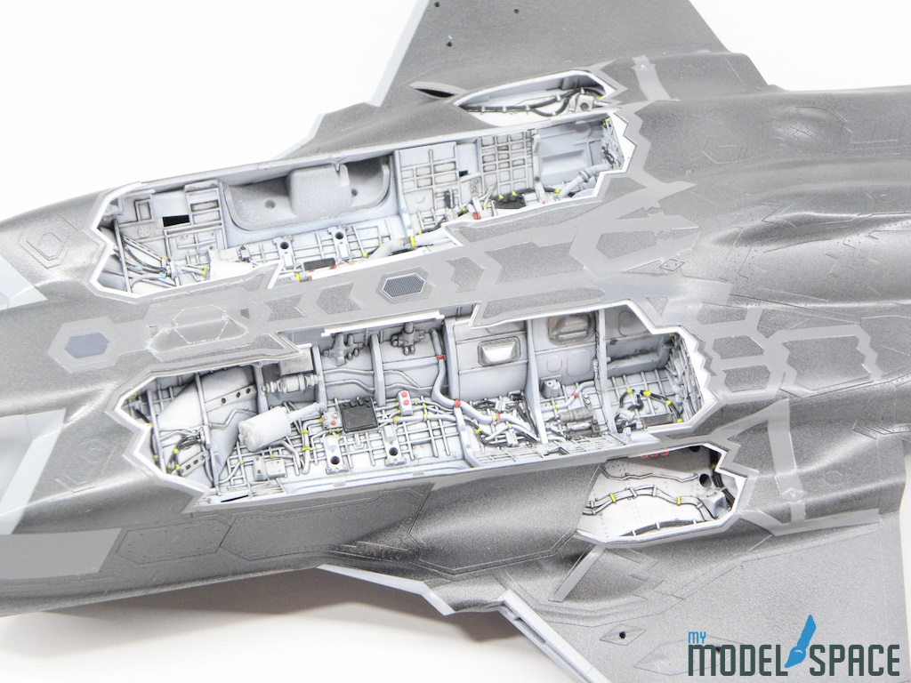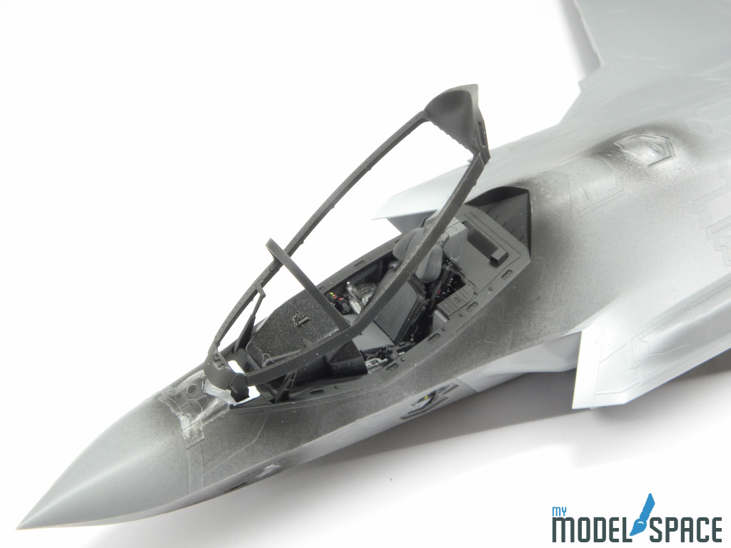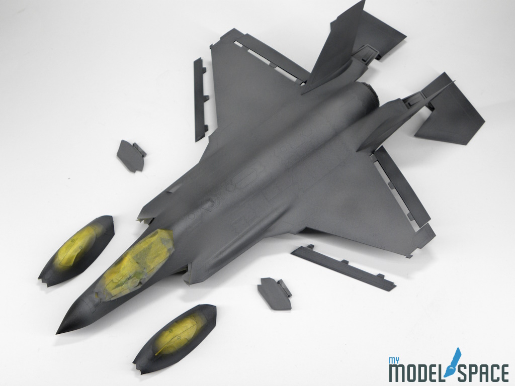 Schon ganz am Anfang muss entschieden werden, welche Version es denn sein darf. Da für mich nur eine frühe Version mit den vielen Ram-Covers in Frage kam, standen von den vielen Varianten nur noch zwei zur Verfügung. USA oder Japan, ich habe mich dann doch für die US Air Force entschieden da dort noch einige Embleme zusätzlich drauf sind. Die Grundlackierung für Cockpit und Waffenschacht, bzw. das Fahrwerk ist rasch abgeschlossen. Ich habe hier das erste mal eine schwarze Grundierung für weiss verwendet. Hört sich komisch an, ergibt aber einen guten Kontrast und sieht nicht so flach aus. Die Detailbemalung des Waffen- und Fahrwerkschachtes hat mich doch fast 3 Stunden gekostet und ist nicht zu unterschätzen.