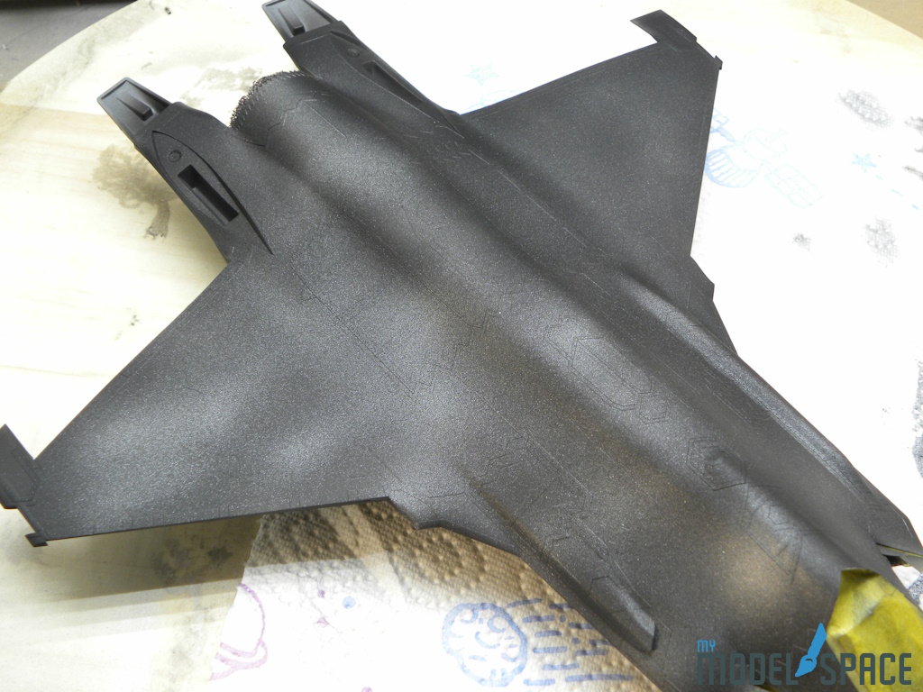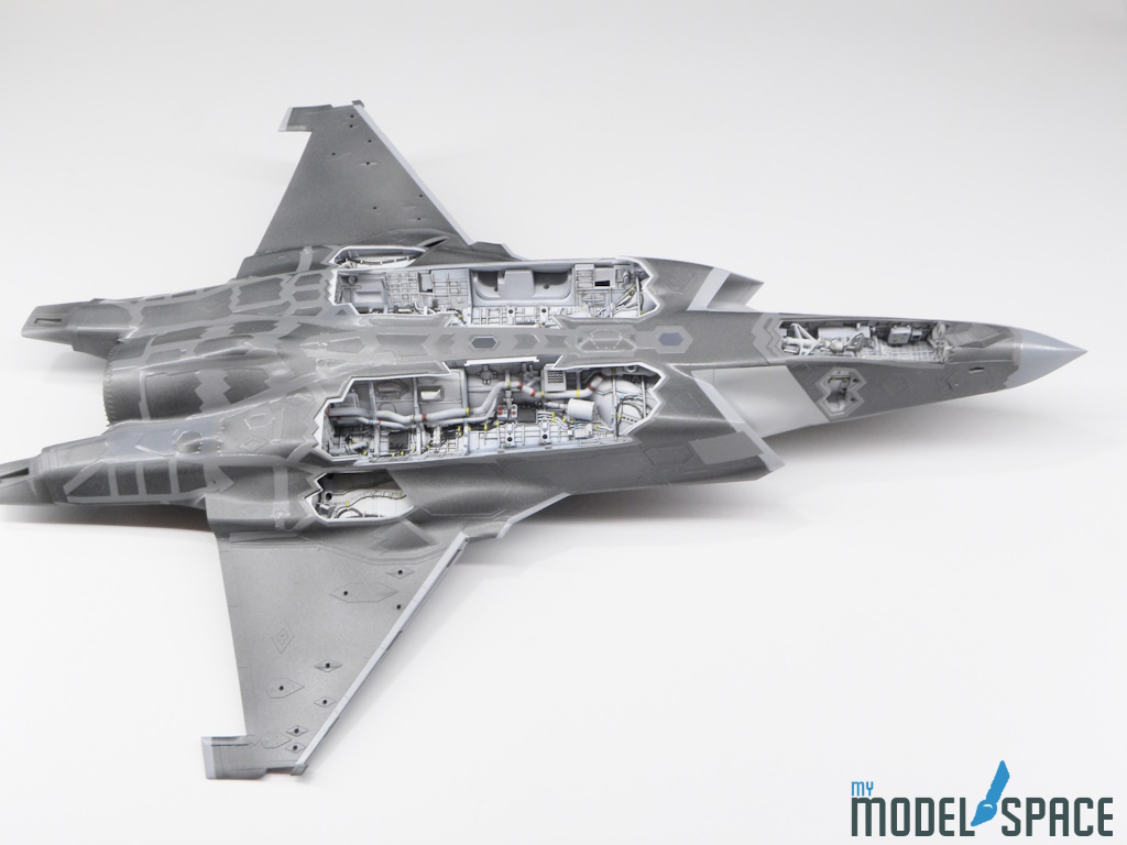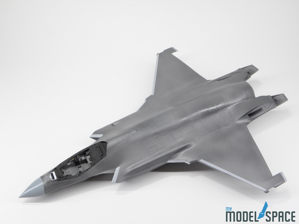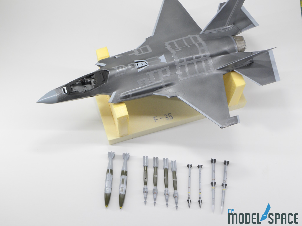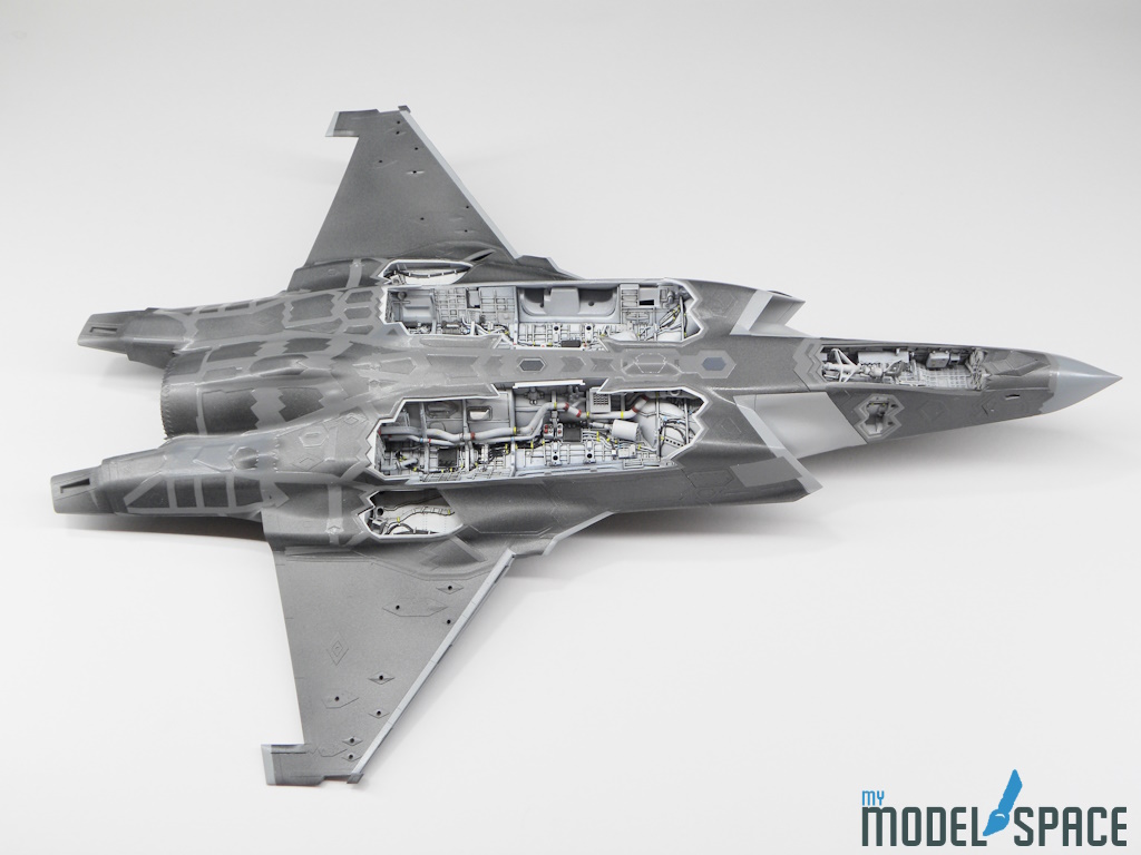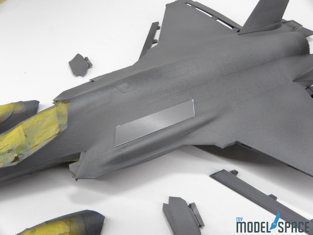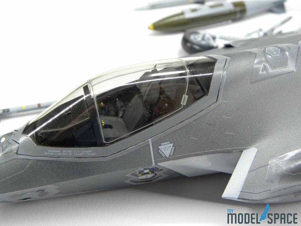 Schon ganz am Anfang muss entschieden werden, welche Version es denn sein darf. Da für mich nur eine frühe Version mit den vielen Ram-Covers in Frage kam, standen von den vielen Varianten nur noch zwei zur Verfügung. USA oder Japan, ich habe mich dann doch für die US Air Force entschieden da dort noch einige Embleme zusätzlich drauf sind. Die Grundlackierung für Cockpit und Waffenschacht, bzw. das Fahrwerk ist rasch abgeschlossen. Ich habe hier das erste mal eine schwarze Grundierung für weiss verwendet. Hört sich komisch an, ergibt aber einen guten Kontrast und sieht nicht so flach aus. Die Detailbemalung des Waffen- und Fahrwerkschachtes hat mich doch fast 3 Stunden gekostet und ist nicht zu unterschätzen.