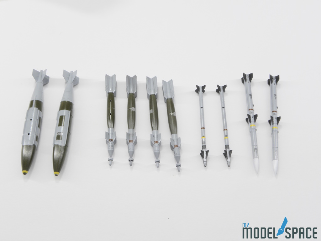 Im Beast-Mode sind eine Aussenlasten zu verbauen. Auch hier gibt es etliche Decals und anzubringen, bringen das Modell so zum leben. Tamiya hat hier einen super Bausatz geliefert, der aber nicht einfach zu bauen ist. Anfänger kann ich den Bausatz nur bedingt empfehlen. Wenn es einfacher gehen soll, dann sollte der Waffenschacht geschlossen und eine Version ohne die frühen Ram-Covers gebaut werden.
