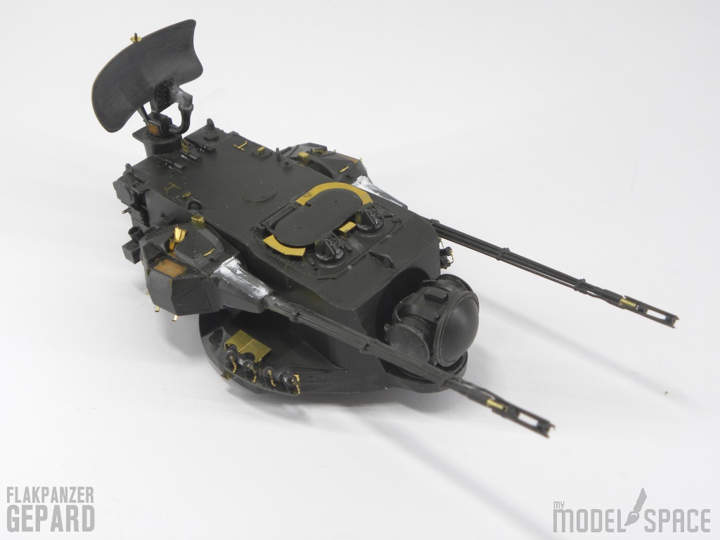 Der Bausatz ist schon in den 70er Jahren erschienen und war lange Zeit der einzige Bausatz eines Flakpanzers Gepard in 1/35. Aus dem Bausatz lässt sich nur ein Modell aus den Anfangsjahren bauen da sonst zu viele Änderungen vorgenommen werden müssen. Das grösste Manko ist der fehlende grössere Abstand zwischen der Laufrolle 3 und 4. Weiterhin fehlt am 5. Laufrollenpaar der Stoßdämpfer.